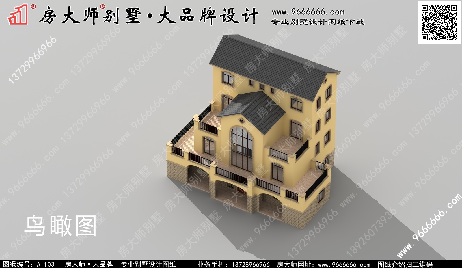 A1103号别墅外墙主要材料:真石漆、荔枝面黄锈石、水泥构件、水泥平板瓦