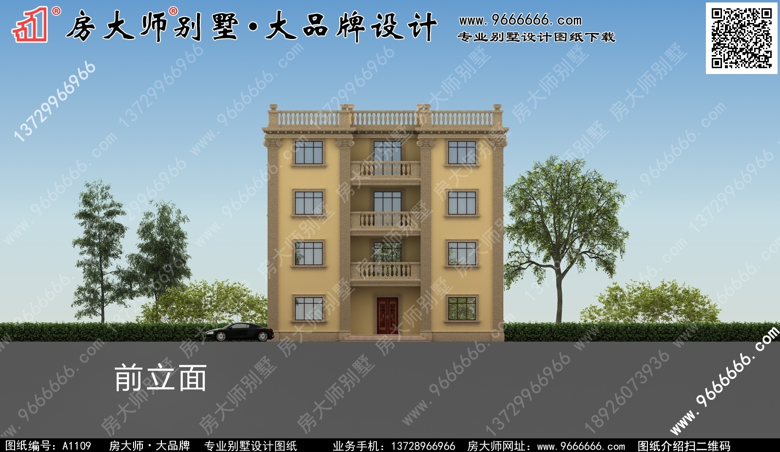 A1109号别墅外墙主要材料:真石漆、葫芦柱栏杆、水泥构件