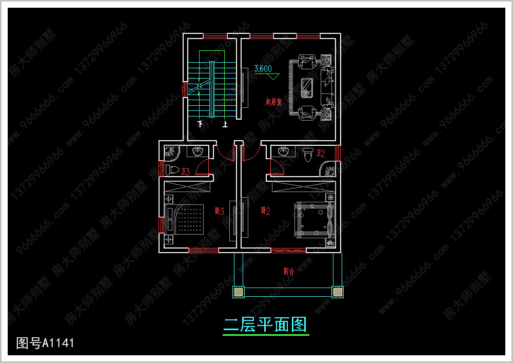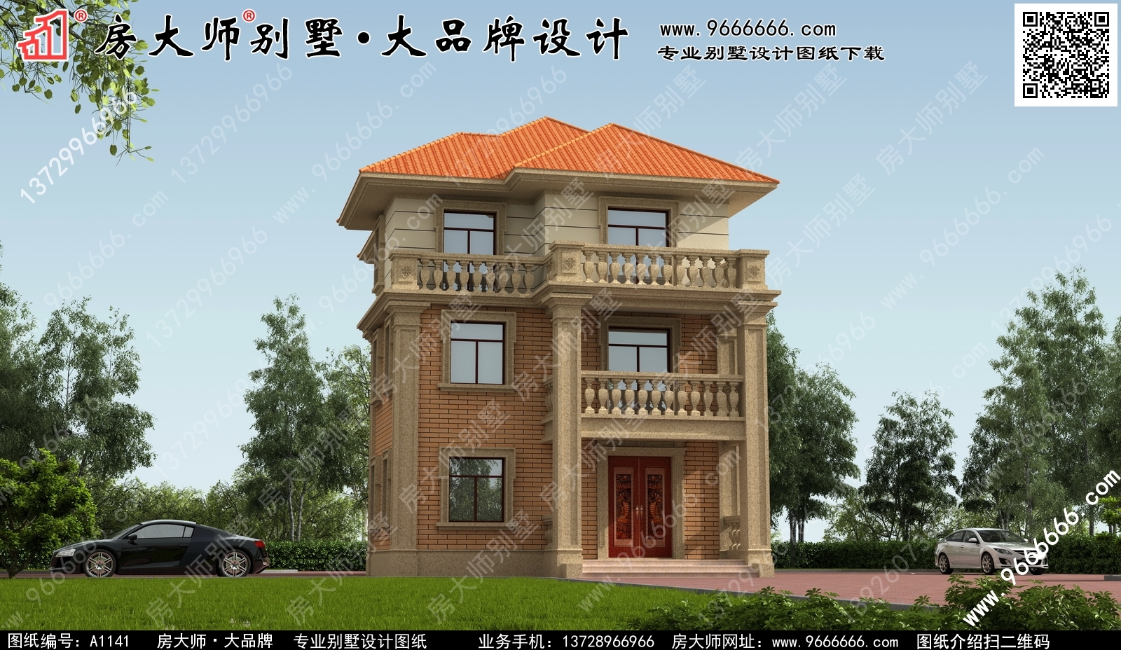 A1141号别墅外墙主要材料:水泥构件、真石漆、外墙砖、310X310S瓦 |
