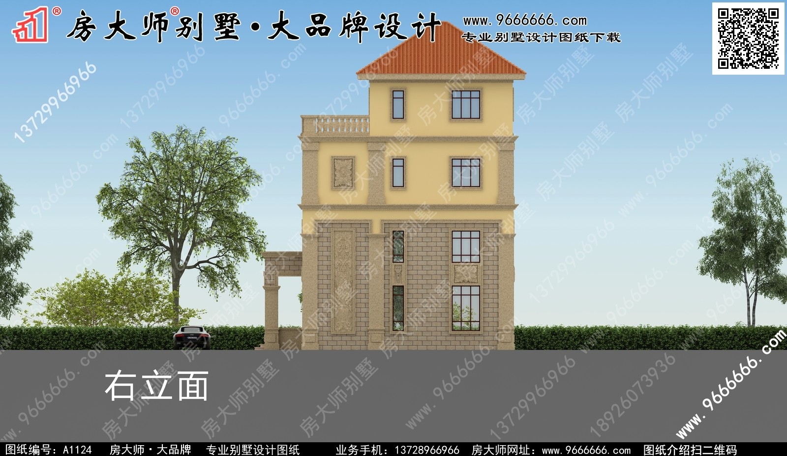 A1124号别墅设计图纸及效果图介绍: