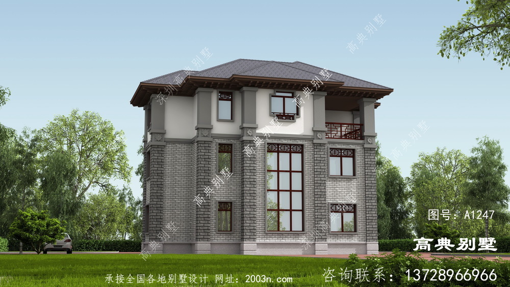A1247号别墅设计图纸及效果图介绍: