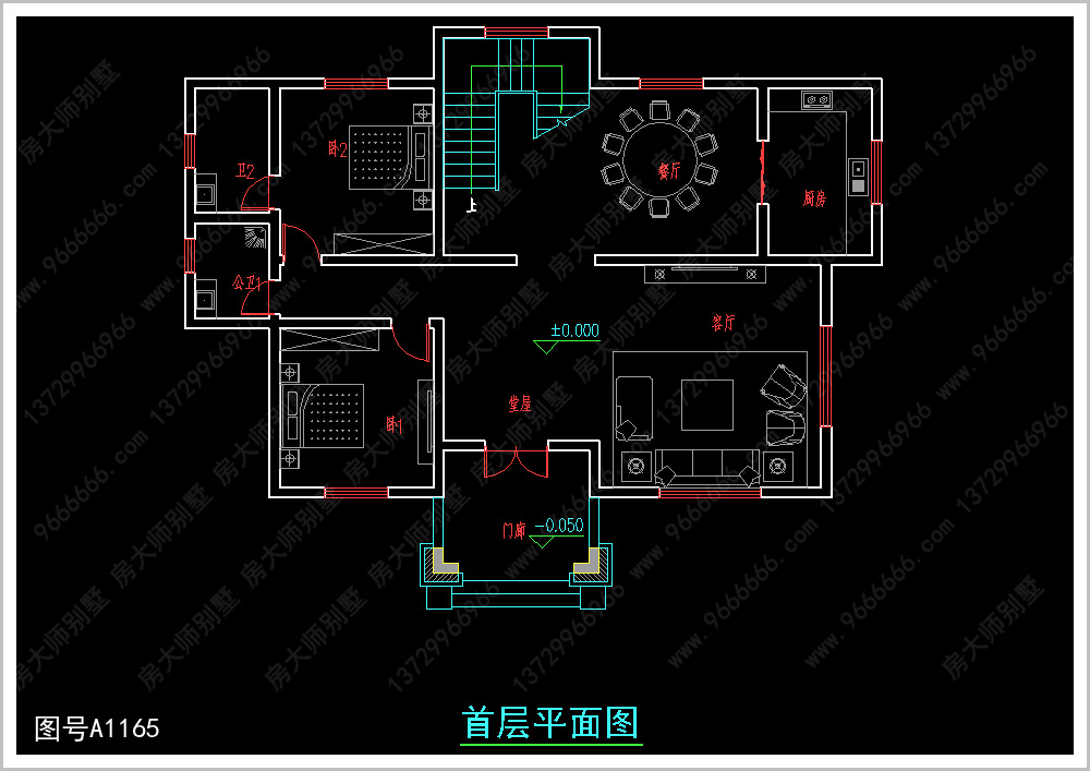 别墅设计图纸及效果图大全首层161平方米图纸编号A1165