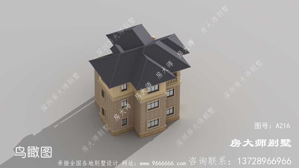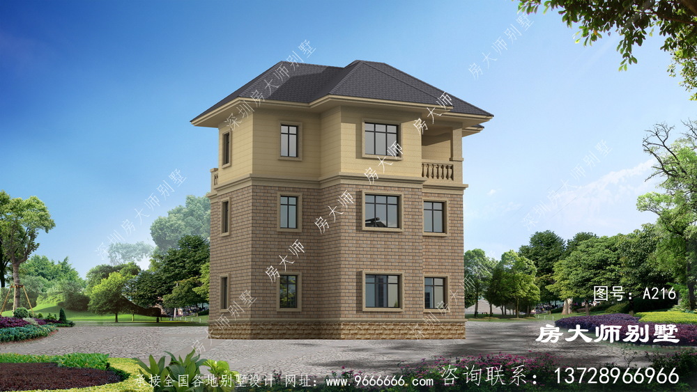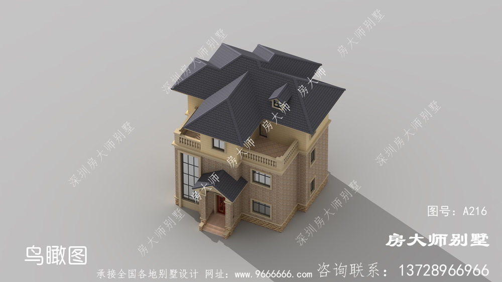 a216号别墅外墙主要材料: 外墙劈开砖、水泥构件葫芦柱栏杆、天然岩石漆、水泥构件线条、水泥平板瓦 |