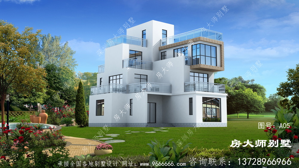 现代风格别墅是现在流行的风格,追求时尚潮流,建在村子里,非常漂亮。