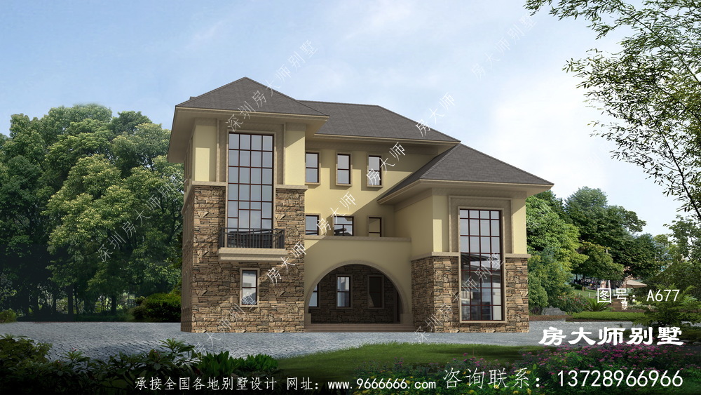 天然岩石漆、铁艺栏杆、外墙文化石、屋面水泥平板瓦 |