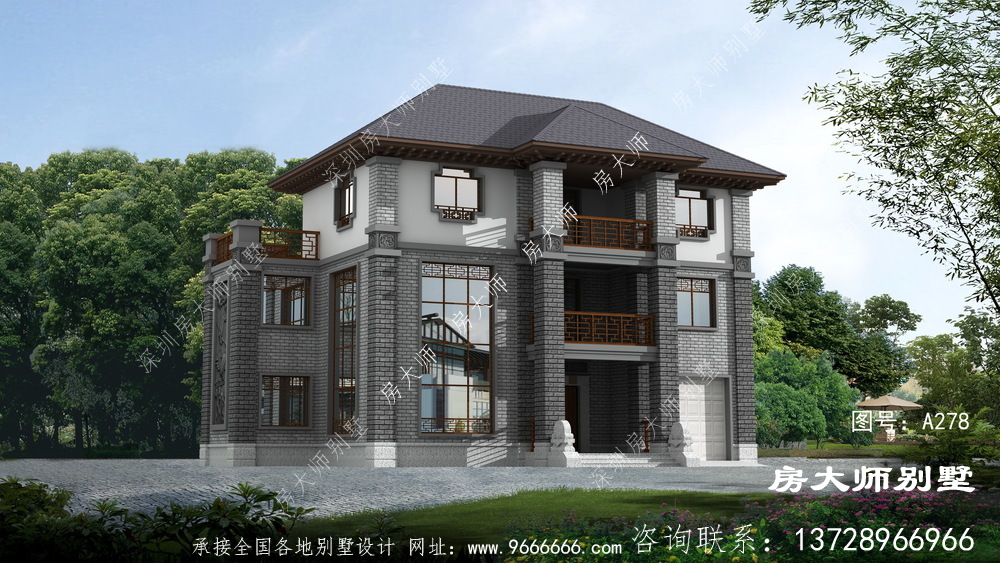 A287号别墅外墙主要材料:青瓦、青灰砖、外墙真石漆 |