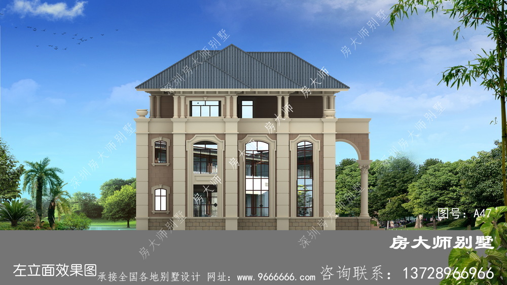 天然岩石漆、蘑菇面黄锈石、欧式水泥构件线条、屋面310X310S瓦 |