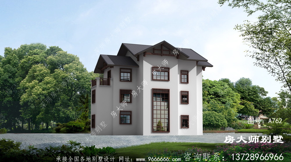 此别墅外墙主要材料:真石漆、实木栏杆、屋面水泥平板瓦 |
