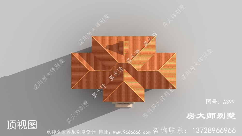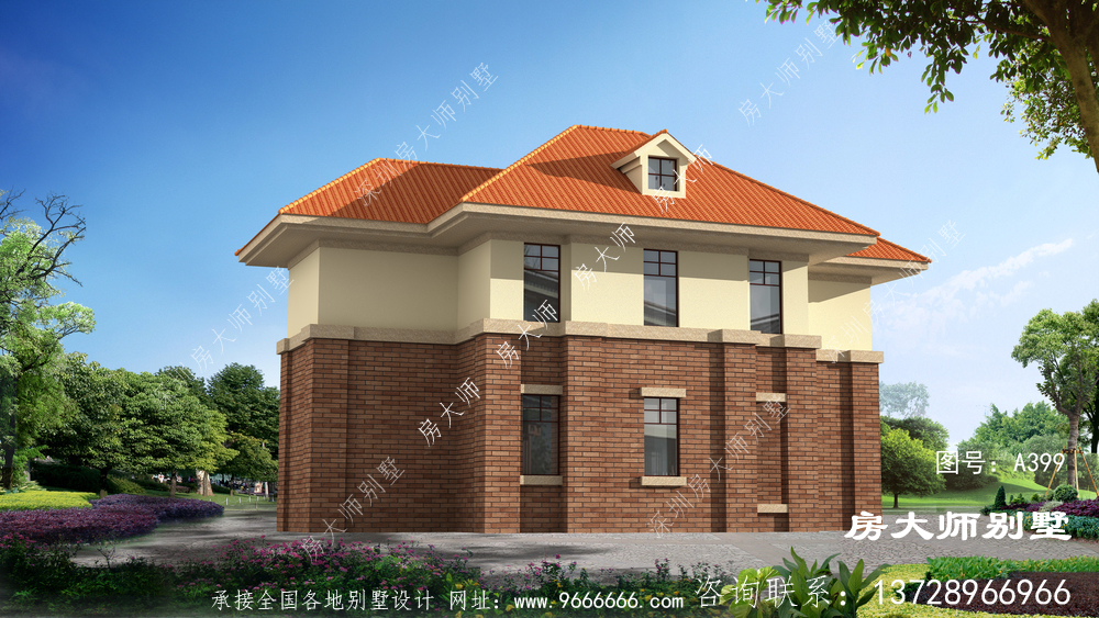 A399号别墅外墙主要材料:别墅外墙天然岩石漆、劈开砖、屋面310X310S瓦