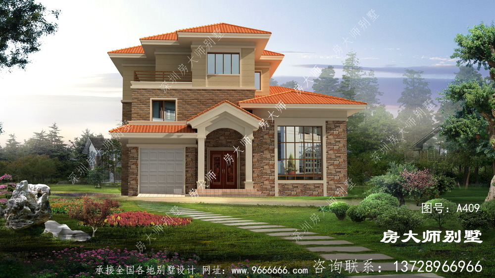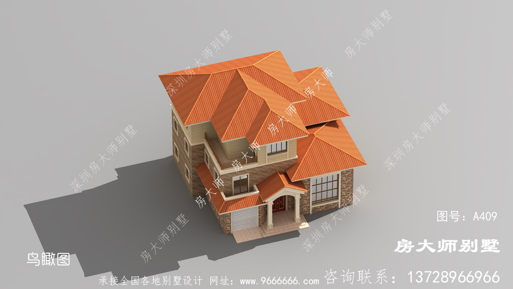 (一)、A409号别墅图纸号别墅设计图纸及效果图介绍: