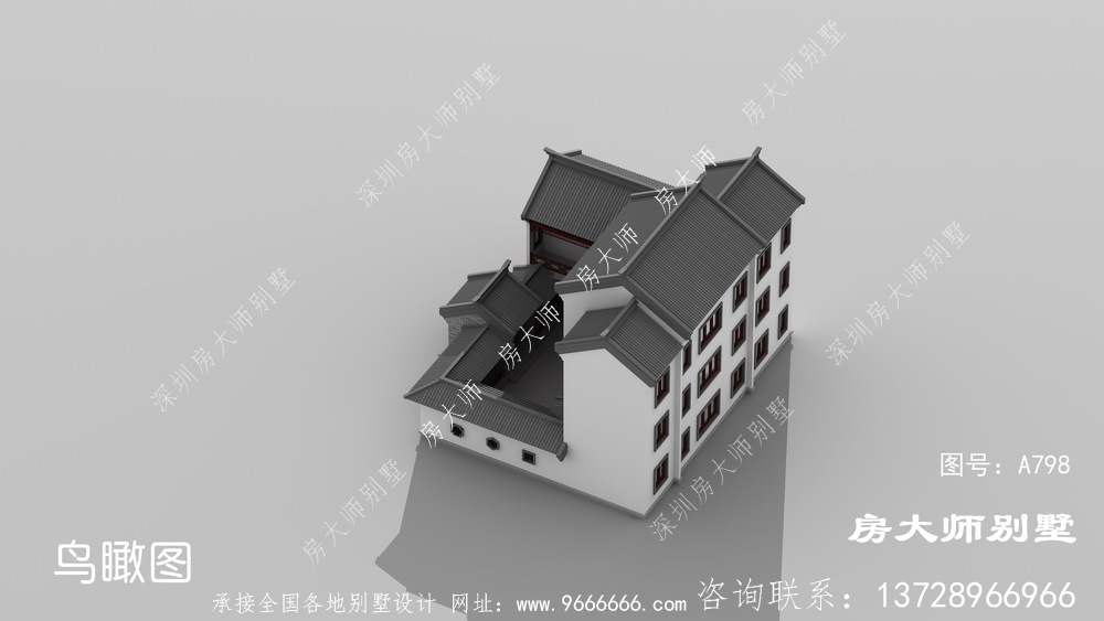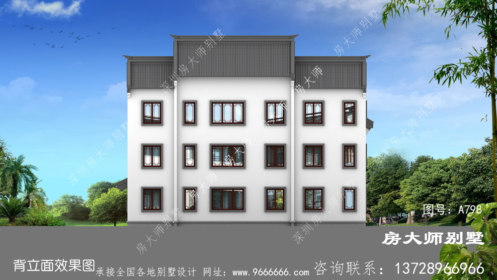 a798号别墅外墙主要材料:屋面仿古小青瓦、青灰砖、真石漆 |