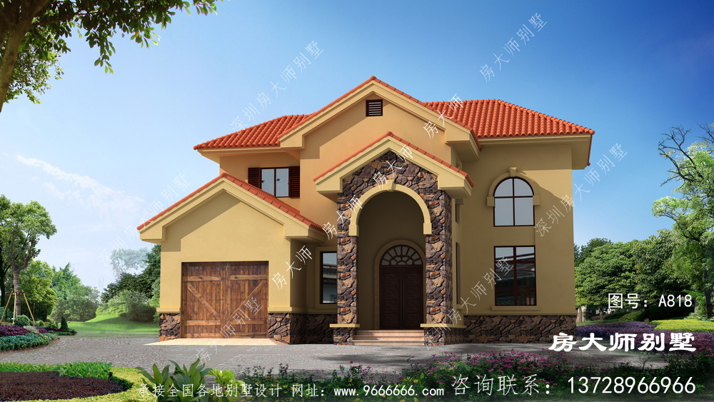 三层半或是四层的别墅户型,在乡村不像两层或是三层那么普遍。由于许多 地域的农村自建别墅常有一定的限高。带来一款今年最流行的欧式风格别墅,两层的高度特别适合农村建造。