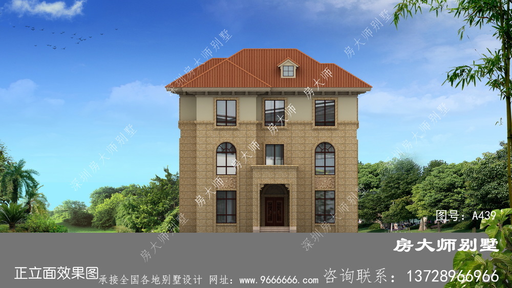 a439号别墅外墙主要材料:天然岩石漆、真石漆、欧式石材构件线条、屋面310X310S瓦 |