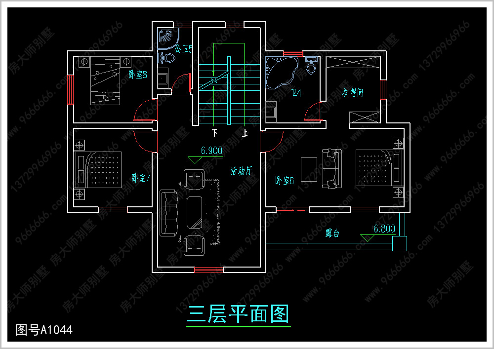 A1044号别墅三层室内功能介绍: