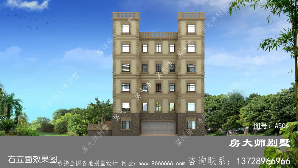 A504号别墅外墙主要材料:文化石、真石漆 |