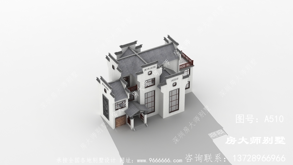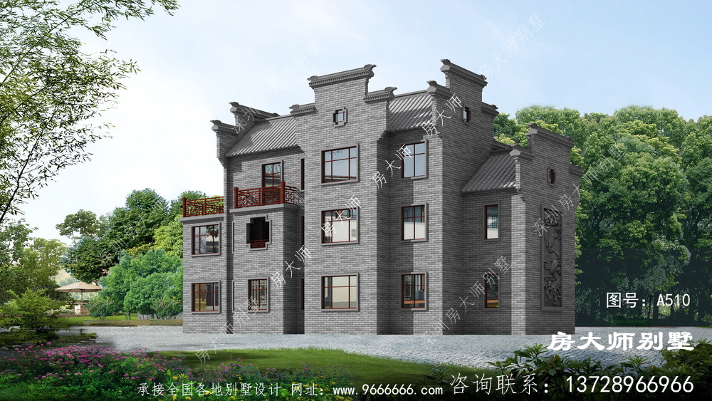 此别墅外墙主要材料:真石漆、青砖、小青瓦 |