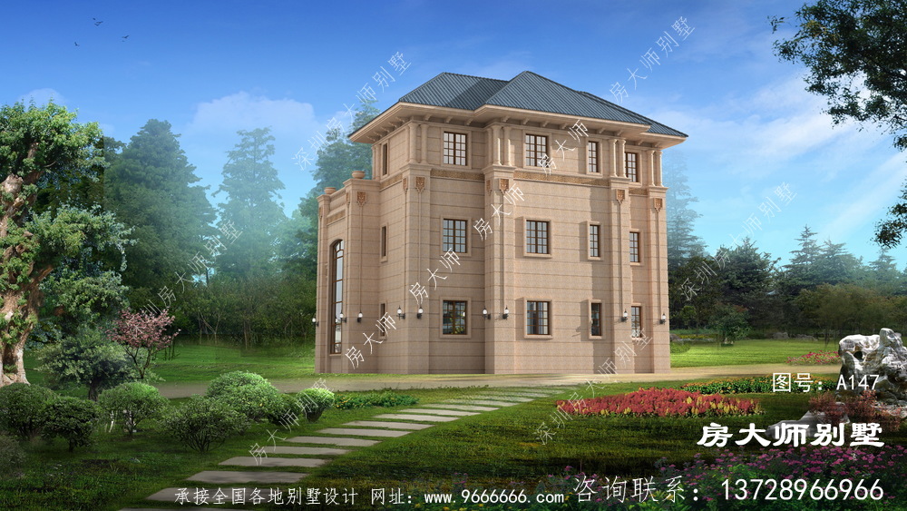 外墙纯石材干挂别墅、荔枝面沙漠棕石材、屋面310X310S瓦 |