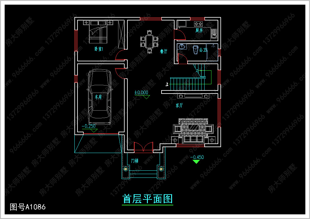 乡村三层别墅设计图纸首层137平方米图纸编号A1086