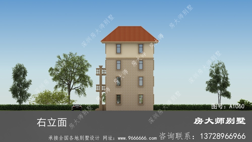 A1060号别墅外墙主要材料:外墙砖、外墙真石漆、屋面S瓦 |