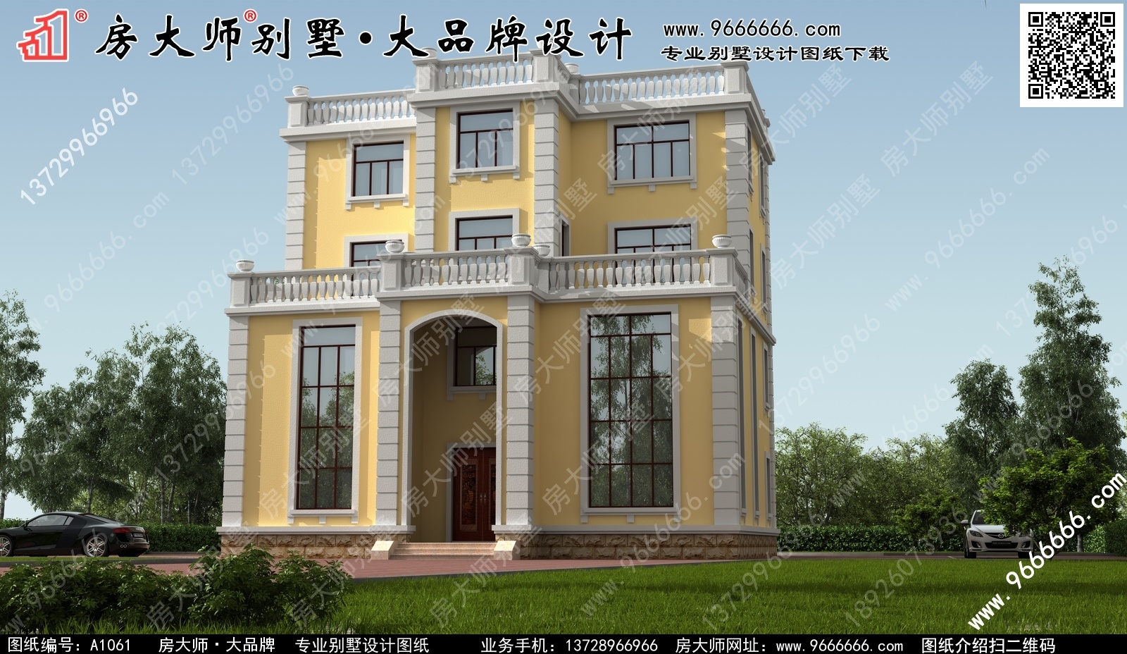 A1061号别墅外墙主要材料:墙脚蘑菇石材、外墙真石漆、外墙欧式水泥构件 |