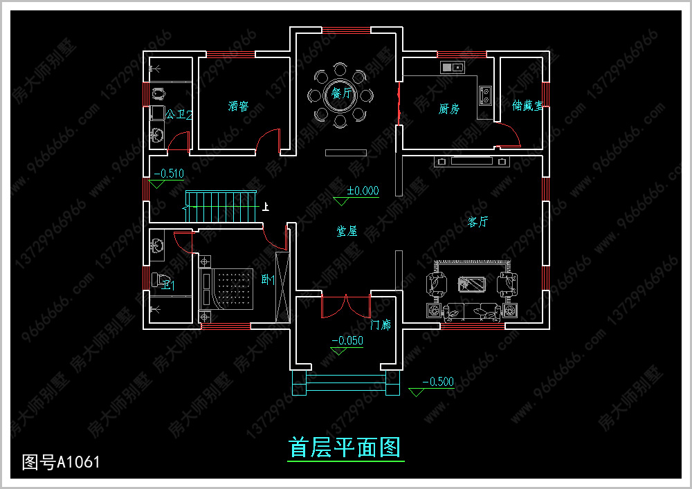 农村四层别墅效果图首层162平方米图纸编号a1061