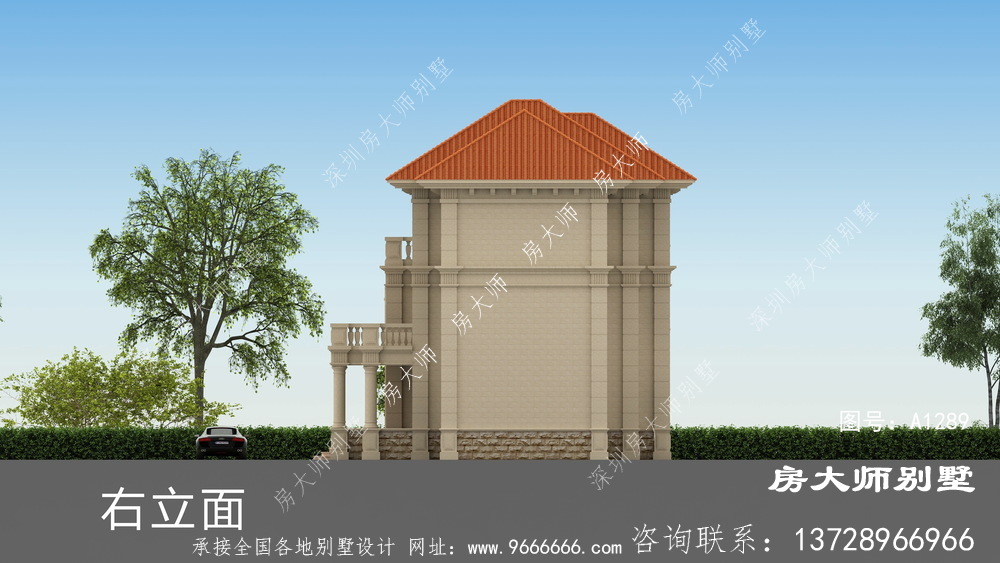A1289号别墅外墙主要材料:S瓦、真石漆、砂岩石、蘑菇面黄锈石、GRC水泥构件 |