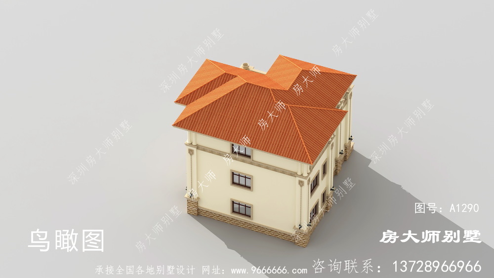 A1290号别墅设计图纸及效果图介绍: