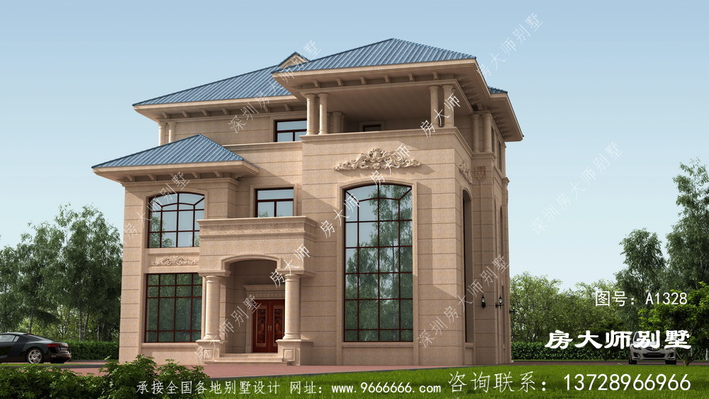 A1328号别墅外墙主要材料:外墙纯石材干挂、永定红石材、310X310S瓦 |