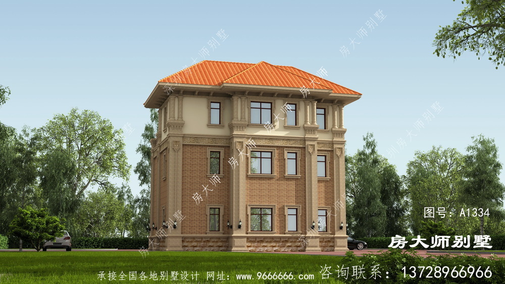 A1334号别墅设计图纸及效果图介绍: