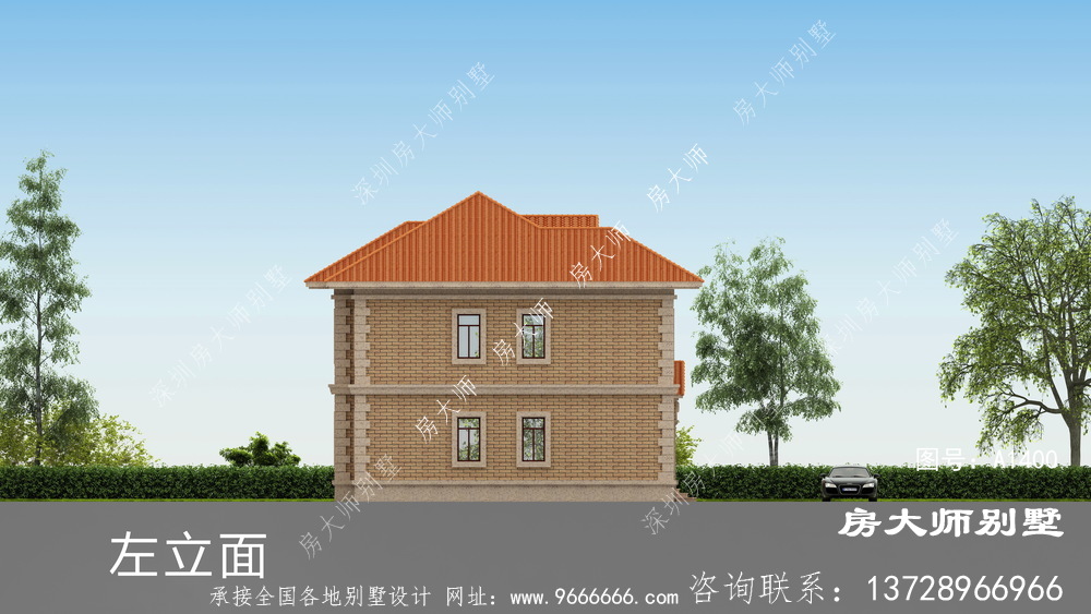 A1400号别墅外墙主要材料:劈开砖、天然岩石漆、310X310S瓦