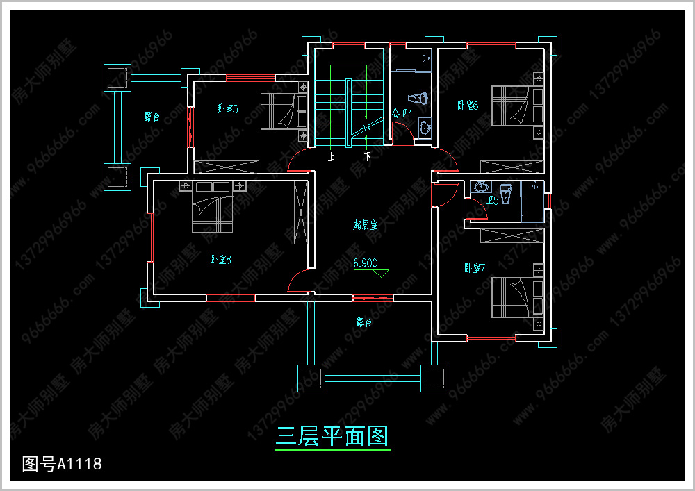 卧室7带卫生间5 (约17平方米/4平方米)(右前面)