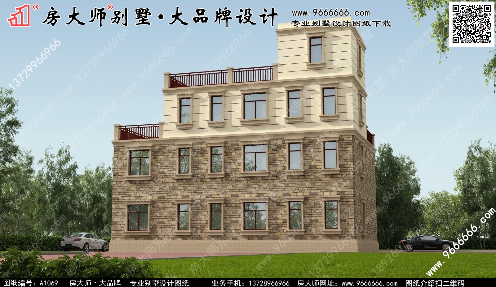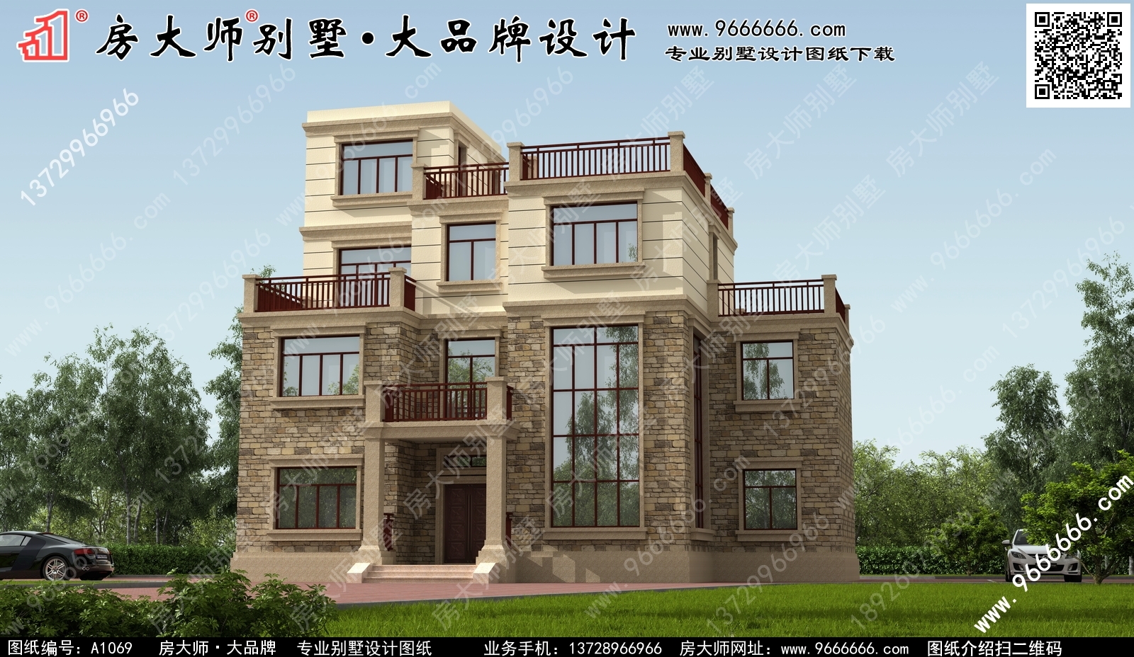A1069号别墅外墙主要材料:外墙文化石、真石漆、铁艺栏杆 |