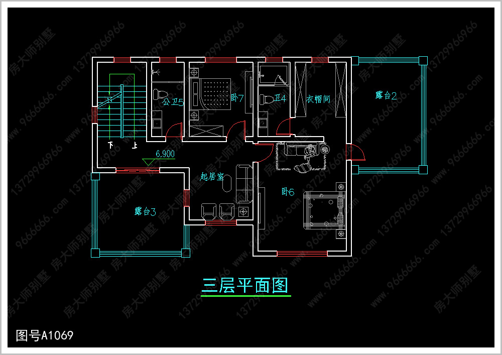 卧6带衣帽间带卫4带露台2 (约22/9/6/17平方米)(右面)