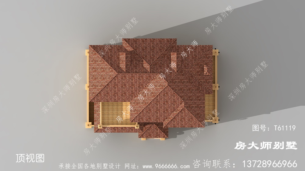 t61119号别墅外墙主要材料:外墙涂料、GRC水泥构件、西瓦、砂岩石、砂岩石浮雕 |