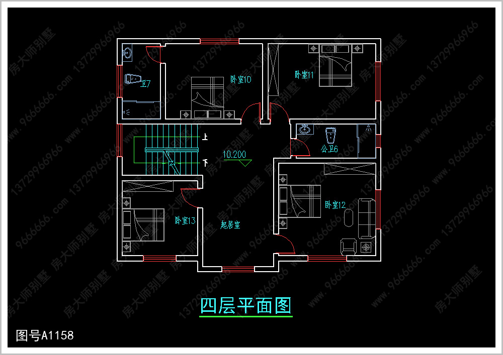 卧室10带卫生间7 (约15平方米/6平方米)(左后面)