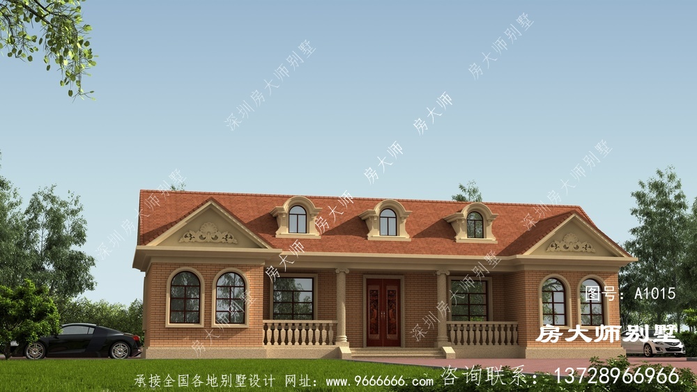 A1015号别墅外墙主要材料:外墙瓷砖、外墙真石漆、水泥平板瓦