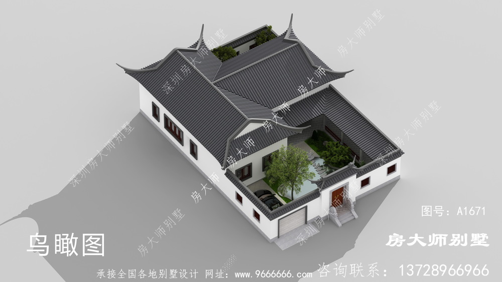 A1671号别墅外墙主要材料:麻石、真石漆、小青瓦